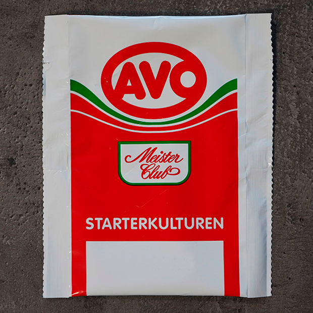 Starterkulturen speziell für Rohwurst. Der Beutelinhalt bringt ca. 6 Millionen Keime in 1 Gramm Wurstmasse. Trägerstoff Dextrose. Helles, feinkörniges Pulver.